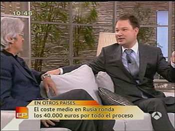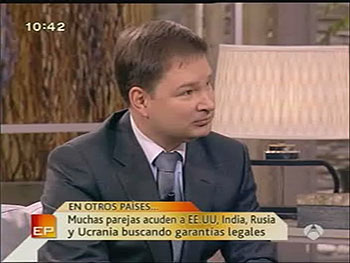 Susana Griso: Tenemos con nosotros a Konstantín Svitnev, no sé si lo he dicho bien. Es el Director General de una agencia rusa especializada en la maternidad subrogada. Allí ocurre todo lo contrario. La legislación rusa es muy permisiva y cada vez más familias españolas acuden a ustedes para conseguir un vientre de alquiler.