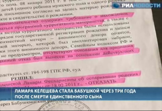 "РИАНОВОСТИ" - Бабушка добивается права быть матерью четверым "суррогатным" внукам
